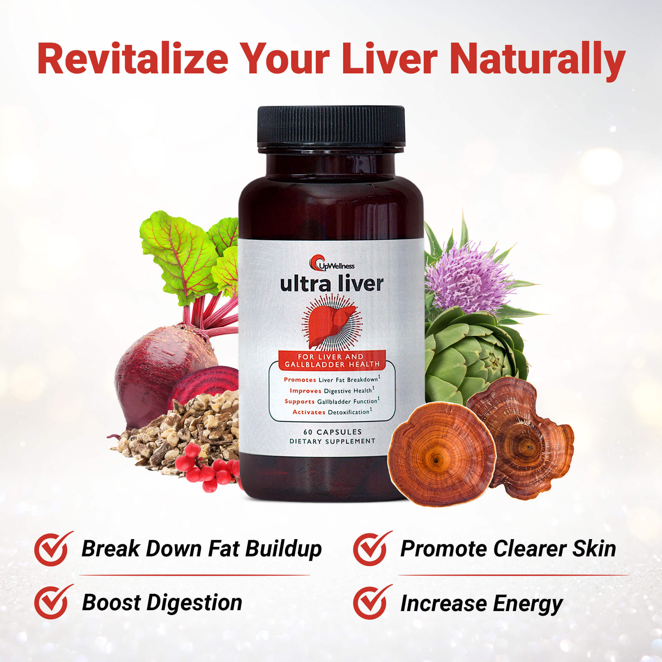 Ultra Liver is designed to support your liver’s natural detoxification process without harmful cleanses or harsh chemicals. With powerful, all-natural ingredients, Ultra Liver works to: